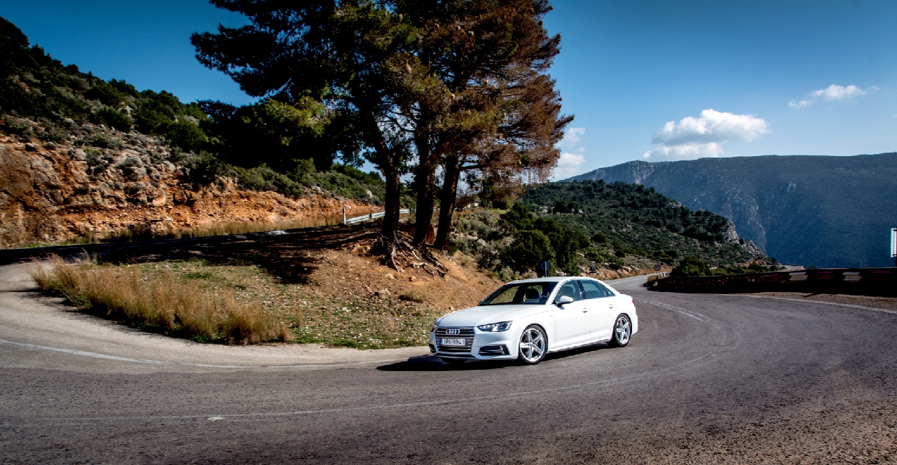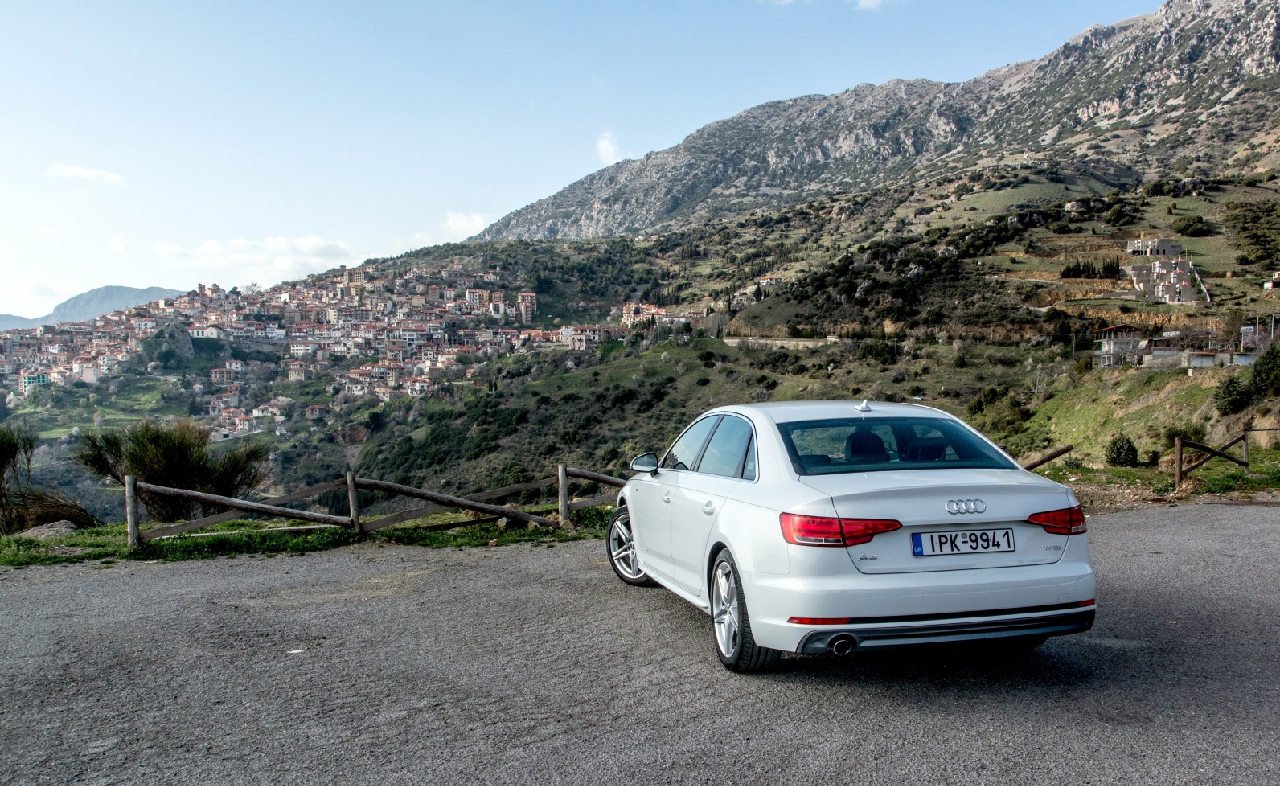 Είμαστε πολύ κοντά στον προορισμό μας πλέον και μάλιστα νωρίτερα από όσο είχαμε προγραμματίσει, ωστόσο κάνω ότι δεν το βλέπω – ξεδιπλώνεται μπροστά μου η σφιχτή διαδρομή Αράχωβας-Δελφών και αποφασίζω να δυσκολέψω λίγο το best seller της Audi – σκεφτόμενος τη δύσκολη μέρα που έχω κι εγώ μπροστά μου. Το κιβώτιο στο manual θυμίζει σε κάθε ευκαιρία γιατί τα διπλού συμπλέκτη έκαναν επανάσταση. Το πλαίσιο – που μεταμορφώθηκε από άνετο και χαλαρό σε πιο εστιασμένο και σαφές στις γρήγορες καμπές νωρίτερα – θέτει ένα άνω όριο στη συμμετοχικότητα αλλά όχι στην αποτελεσματικότητα. Όταν το παρακάνω με κάνει να νιώθω σχεδόν άσχημα, ένα reality check πως βρίσκομαι μέσα σε λιμουζίνα, σχεδιασμένη να προστατεύσει τον άμαθο με προοδευτική υποστροφή που θα τον επαναφέρει στην τάξη.