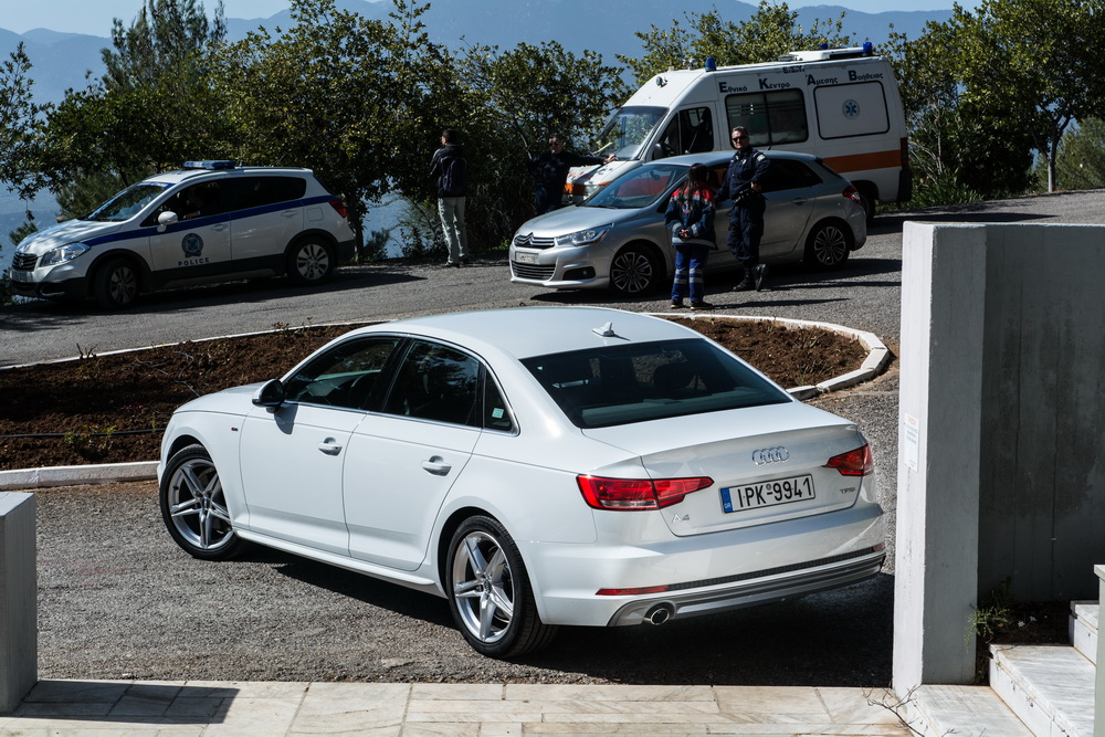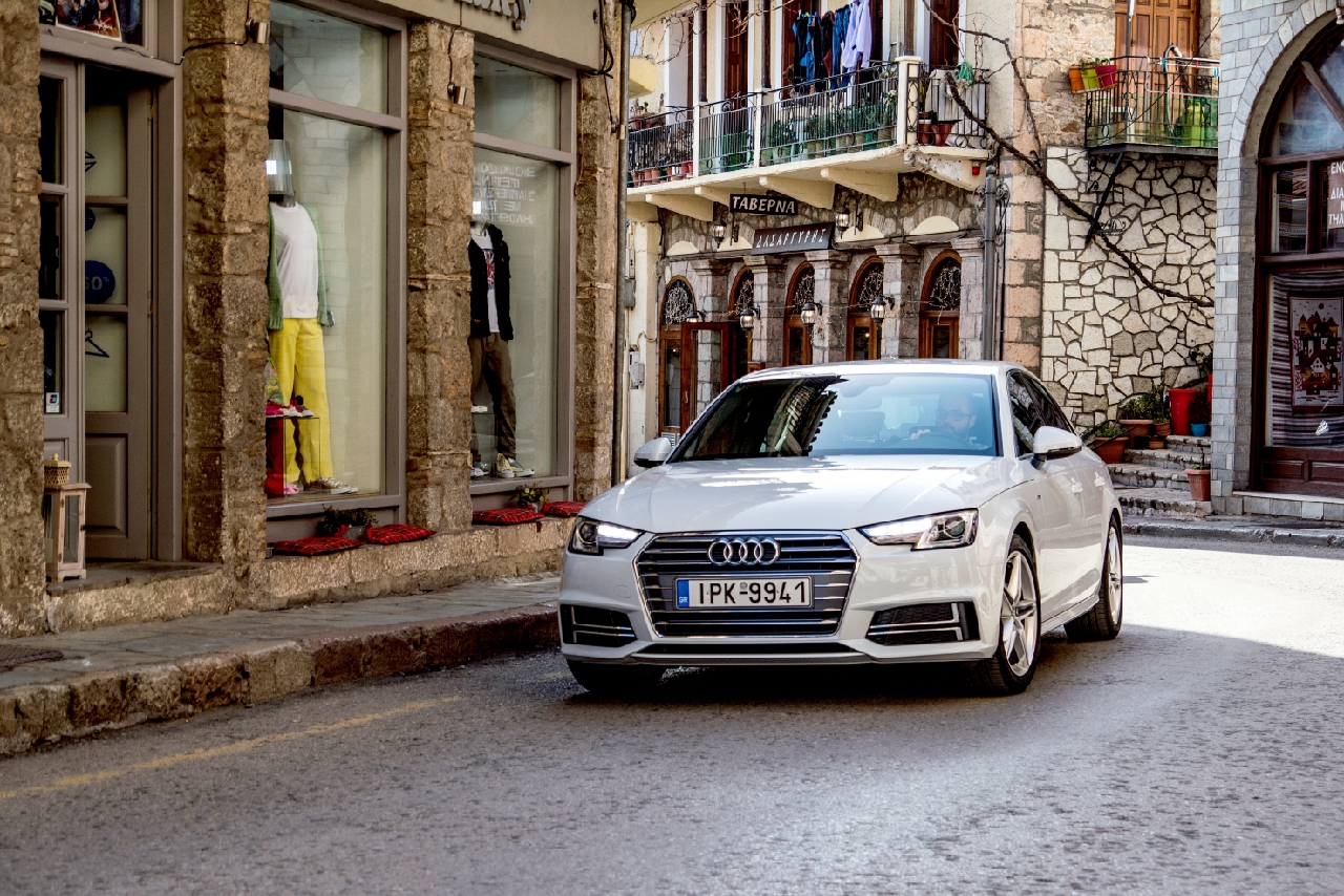 Είναι μια υπέροχη, λαμπρή μέρα έξω, ωστόσο εμείς θα πρέπει να την περάσουμε γινόμενοι σοφότεροι για το οικονομικό και πολιτικό μέλλον της χώρας και της ΕΕ. Το A4 περνά μέσα από τα στενά δρομάκια και φτάνει στον τόπο που πραγματοποιείται το συνέδριο. Οδηγοί μοντέλων ψηλότερης κατηγορίας το χαζεύουν μπερδεμένοι. Δεν είναι μόνο που το νέο A4 δεν έχει προλάβει να κυκλοφορήσει ακόμα στους ελληνικούς δρόμους – η παρουσία του στην 5η γενιά θολώνει λίγο περισσότερο τις γραμμές ανάμεσα στις κατηγορίες.